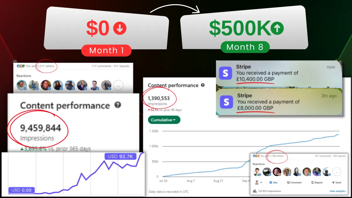 ✅ Grew my personal brand to $500K in 8 months