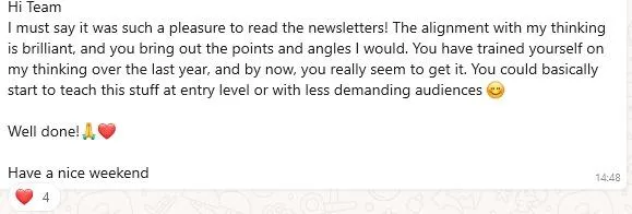 We don't just leave you to it after the first 3 months! We support you and keep you accountable for the whole year. We have weekly writing parties, content review channels, PR opportunities and a network of more than £3bn we can plug you in to. PLUS, you've got access to our team who are actively working with our £5k+ per month 'Done For You' Clients, so you're the first to know what's going on with the LinkedIn ecosystem.