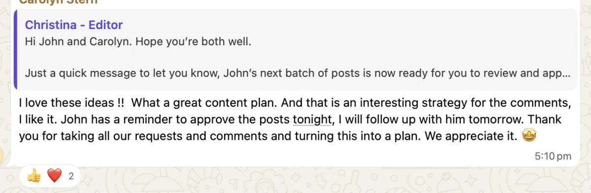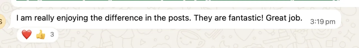 "Being able to post on LinkedIn consistently and have the audience react so positively is doing wonders for my confidence and business. I'm also spending LESS time on content and MORE time with my family."