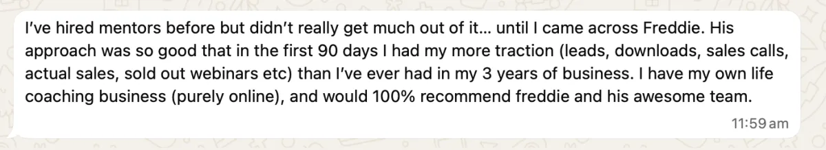 Exclusive access to Whatsapp Freddie & his team whenever you need help or assistance with your LinkedIn, positioning or anything business related.