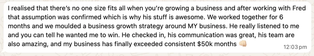 "Implementing these systems meant I saw 120% increase in traffic to my website. Your monetization system meant I could convert that traffic into clients whilst I was sleeping!!"