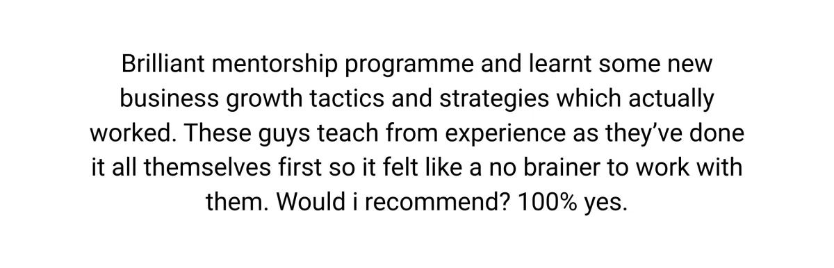 Programmes start at £4,000/year. But the better question is what it costs you to keep growing without a system. Our clients consistently generate 10x their investment within the year- and if you don't at least double yours, we refund you in full. The strategy call is where we establish whether the numbers make sense for your business specifically.